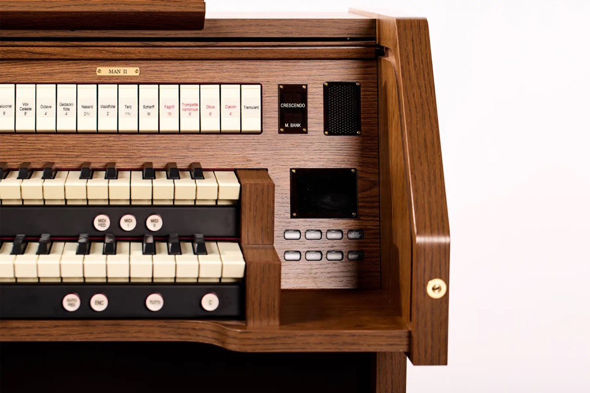 Maestro 45 oferuje wiele opcji personalizacji instrumentu. Organy z tej linii obejmują wysoce konfigurowalne modele, od klawiatur, przez stoptaby, po kolor i wykończenie, i wiele więcej. Od różnych typów klawiatur i pokręteł ograniczników po kolor i wykończenie obudowy. Możesz więc dostosować organy dokładnie do swoich potrzeb i stylu gry.