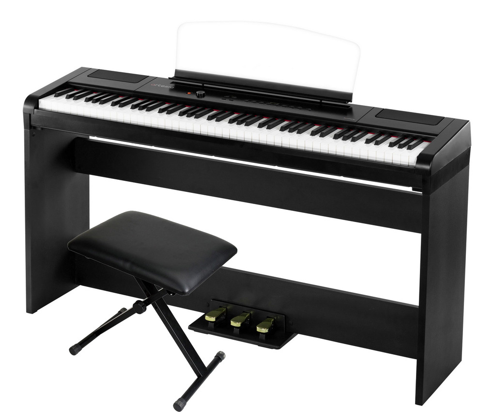 Pianino Artesia Harmony oferuje czarne matowe wykończenie z eleganckim wzornictwem, które będą pasować do wystroju każdego pomieszczenia. Dodanie pasującej ławki meblowej ze schowkiem (opcjonalnie) uzupełnia kompletny pakiet pianina domowego, aby Twoje nuty i książki były schludnie przechowywane.