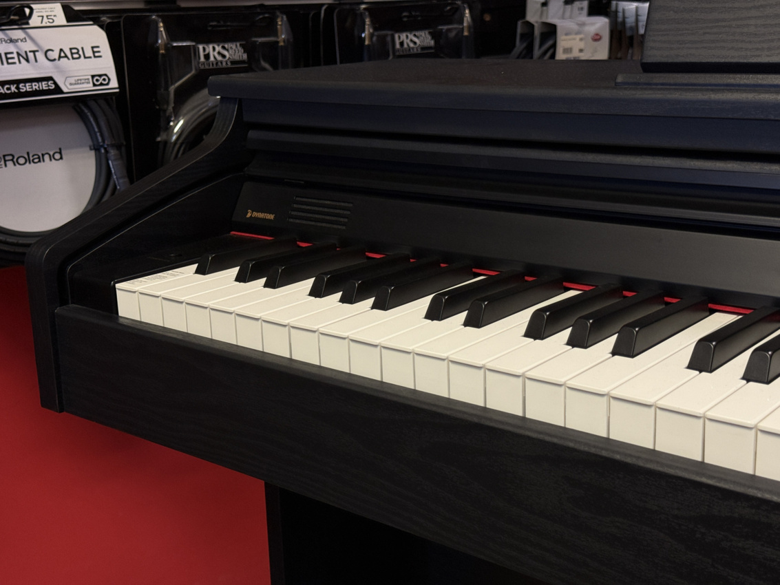 Dynatone SLP-150 to idealny instrument do Twojego salonu, który upiększy go swoim gabinetowym designem oraz wysokiej jakości brzmieniem fortepianu. Model ten jest jednym z najbardziej polecanych instrumentów na start, ze względu na swój bardzo dobry stosunek ceny do jakości, oraz fakt, iż posiada wszystko co niezbędne zarówno dla początkującego, jak i zaawansowanego pianisty.