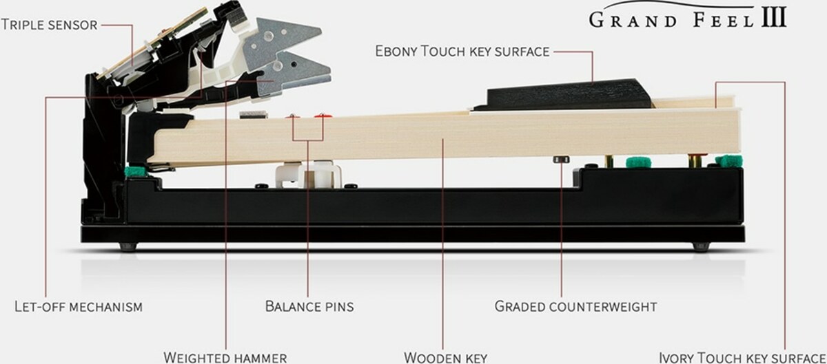 Kawai ma ponad 95 lat doświadczenia w projektowaniu i wytwarzaniu jednych z najlepszych fortepianów na świecie. Ich doświadczenie w produkcji instrumentów akustycznych zostało wykorzystane do stworzenia jednej z najlepszych akcji klawiatury w instrumencie cyfrowym. Wszystkie osiemdziesiąt osiem czarno-białych klawiszy jest ukształtowanych w całości z długich kawałków drewna, z delikatnie teksturowanymi powierzchniami przypominającymi kość słoniową i heban, które pochłaniają wilgoć i wspomagają kontrolę. Każdy drewniany klawisz obraca się bez wysiłku na kołku równoważącym, a jego końce wznoszą się i opadają, aby odtworzyć konwencjonalny ruch huśtawki charakterystyczny dla akcji pianina akustycznego. Po naciśnięciu tył klawisza podnosi się, uruchamiając młotek o gradacji, który uderza w wyłącznik ciśnieniowy. Wartość siły przyłożonej do tego przełącznika jest następnie mierzona, a odpowiadająca jej nuta jest odtwarzana z autentyczną głośnością i charakterem tonalnym.