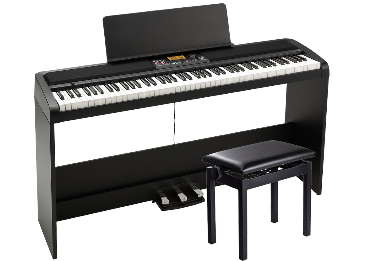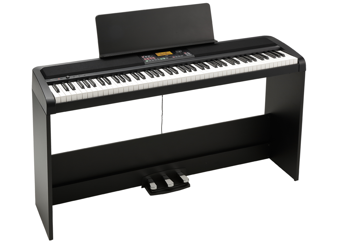 KORG XE20SP to nowa pozycja w ofercie producenta. Pełnowartościowe pianino cyfrowe z ważoną klawiaturą fortepianową, dedykowanym, drewnianym statywem oraz listwą z 3 pedałami połączone z aranżerem (keyboardem) dającym możliwość grania z pełnym akompaniamentem.
