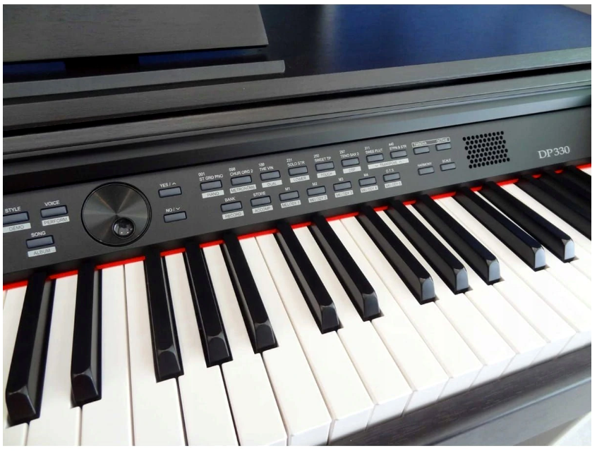 Mamy tutaj oczywiście pełną paletę brzmień pianin i fortepianów, wspieraną metronomem, czyli zapewnia nam DP330 typowo fortepianowe opcje.