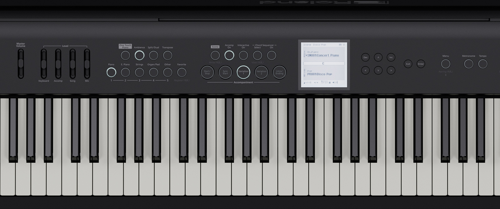 Rozwijaj i wykonuj autentyczne techniki gry na pianinie z silnikiem SuperNATURAL Piano i 88 ważonymi klawiszami. Eksploruj syntezatory, głosy orkiestrowe i nie tylko dzięki zaawansowanemu silnikowi dźwiękowemu ZEN-Core, wspieranemu przez interaktywne akompaniamenty, które zapewniają kontrolę nad całym zespołem. Podłącz mikrofon i śpiewaj z efektami wokalnymi i harmoniami w czasie rzeczywistym. Idź dalej dzięki obsłudze Bluetooth® audio/MIDI, wbudowanemu nagrywaniu, łączności z komputerem i licznym opcjom rozbudowy w Roland Cloud.