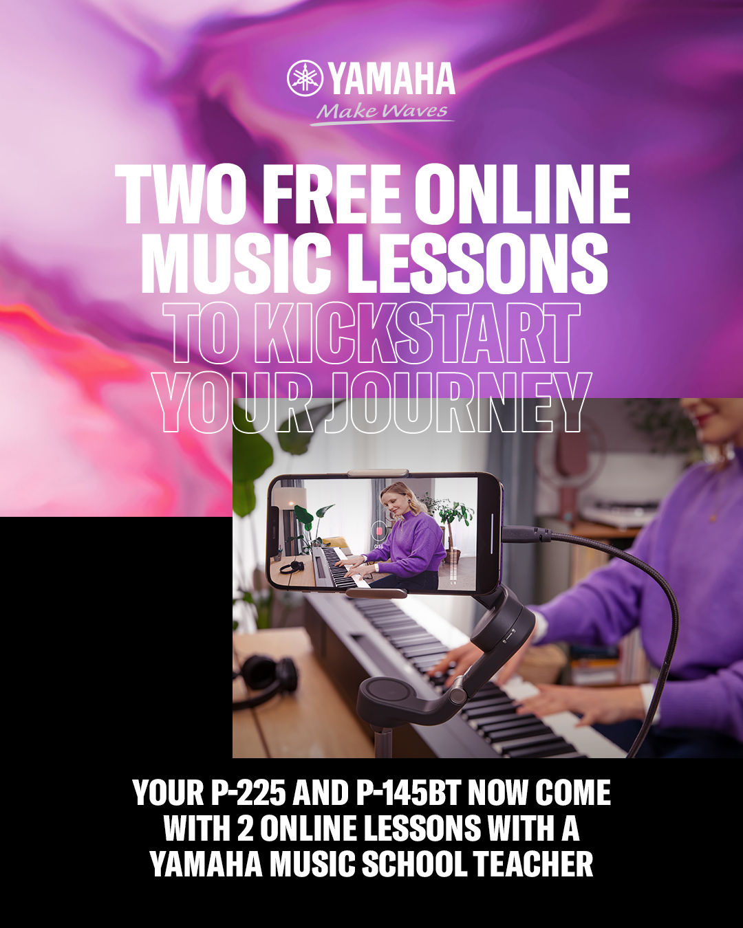 YAMAHA P145 BT objęta jest akcją promocyjną PLANY NOW, MAKE WAVES w której przy zakupie instrumentu otrzymasz DARMOWE LEKCJE ONLINE oraz DARMOWY DOSTĘP PREMIUM DO APLIKACJI EDUKACYJNEJ FLOW KEY