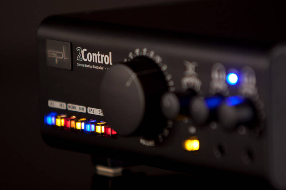 Nowy sterownik 2Control łączy w sobie regulację odsłuchu na monitorach i słuchawkach, a wszystko to w jednym, najwyższej jakości urządzeniu. W całości analogowy 2Control pozwala na podłączenie i wybieranie między dwoma źródłami stereo, dwoma zestawami głośników i dwiema parami słuchawek. Dostępne jest również trzecie, monofoniczne wyjście głośnikowe, które może zostać wykorzystane do podłączenia subwoofera. Poziom głośników regulowany jest za pomocą dużego, centralnie umieszczonego potencjometru. Każde wyjście słuchawkowe zasilane jest przez osobny wzmaczniacz i może być niezależnie regulowane. Przełączniki Mono i DIM pozwalają na bardziej zaawansowaną regulację monitorowania.