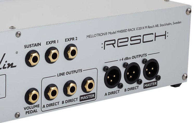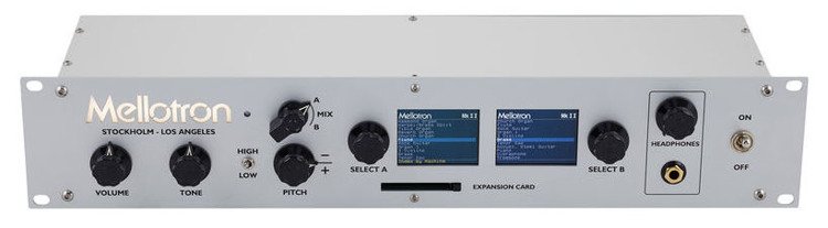 Mellotron RACK to mobilna wersja instrumentu M4000D zamknięta w 19″ obudowie typu rack, która sprawdzi się doskonale w domowych studiach, trasie lub wszędzie tam gdzie nie ma zbyt wiele miejsca na dodatowy sprzęt. Urządzenie udostępnia około 100 nieskompresowanych, 24-bitowych próbek, wyselekcjonowanych z taśm używanych w oryginalnych konstukcjach Mellotron/Chamberlin pierwszej generacji.