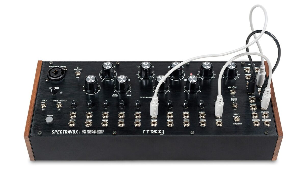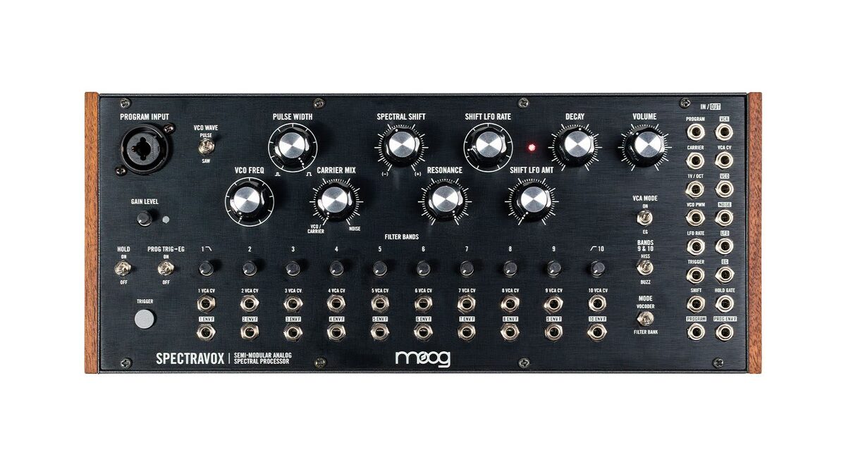 Spectravox, najnowszy członek półmodularnej rodziny Moog, to przełomowe narzędzie do rzeźbienia dźwięku. Analogowy procesor spektralny oparty na 10-pasmowym banku filtrów, Spectravox samodzielnie tworzy żywe drony i kolorowe zamiatanie tonalne oraz dodaje rezonansową głębię i psychodeliczny ruch spektralny do dowolnego dźwięku zewnętrznego. Po podłączeniu mikrofonu Spectravox staje się 10-pasmowym analogowym wokoderem z innowacyjną zintegrowaną modulacją wszystkich filtrów. Eksplorując i rozszerzając topologię vocodera i banku filtrów, Spectravox jest wysoce elastycznym instrumentem i procesorem sygnałowym z obszerną kieszenią na łatki do integracji w studiach każdej wielkości.