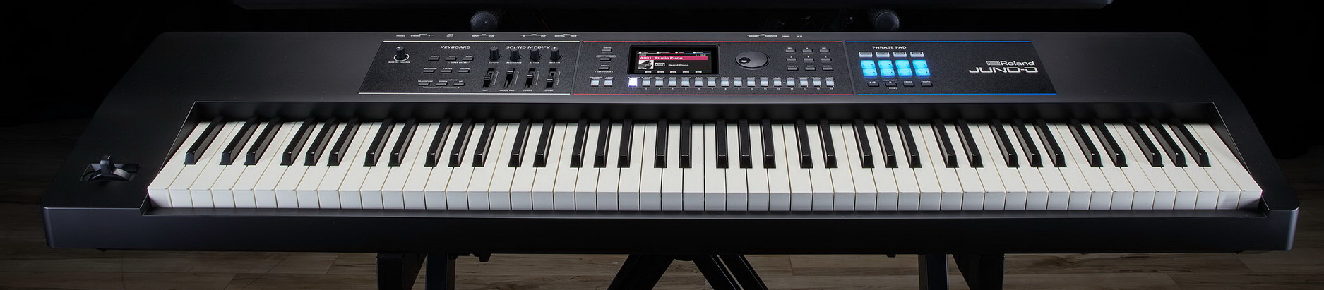 Najwyższej klasy model JUNO-D8 oferuje wrażenia gry w stylu fortepianowym, dzięki 88 ważonym klawiszom i mechanice młoteczkowej.