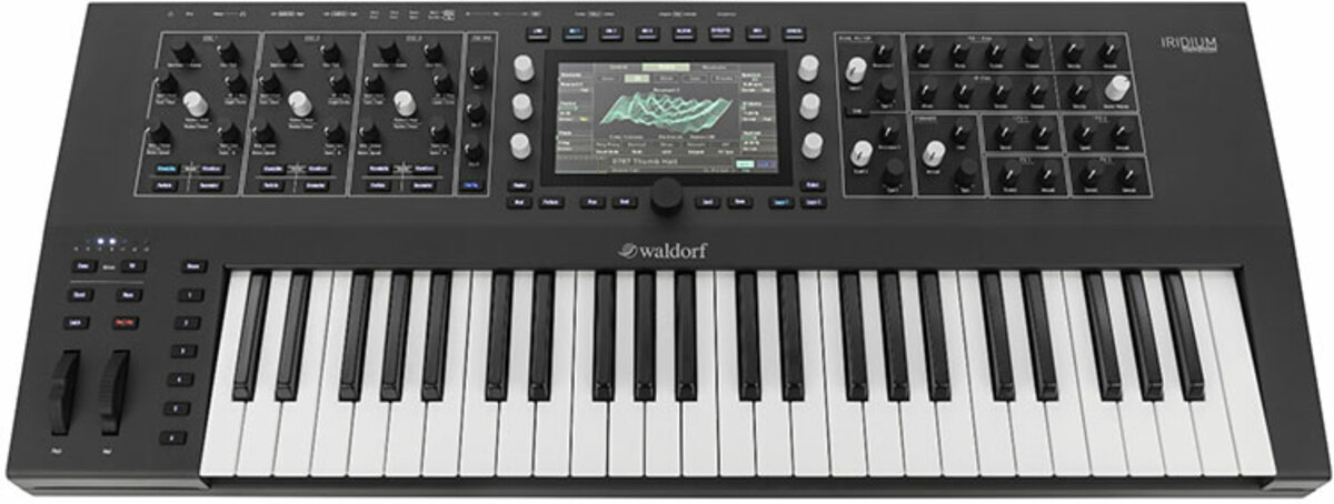 Waldorf Iridium Keyboard to potężny silnik syntezatora Waldorf Quantum w bardziej kompaktowej obudowie z kompletnie nową 49-klawiszową klawiaturą FATAR. Iridium to trzy oscylatory z pięcioma różnymi trybami pracy, trzy filtry stereo na głos, sześć obwiedni i sześć LFO, kolorowy ekran dotykowy do szybkiej nawigacji oraz matryca modulacji z czterdziestoma slotami.