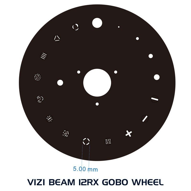 16 statycznych GOBO + otwarte (w tym 4 reduktory wiązki)