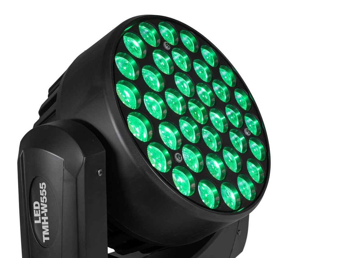 Głowa ruchoma z 37 jasnymi diodami LED 15 W RGBW, zoomem, makrami, wzorami i ustawieniem temperatury barwowej
