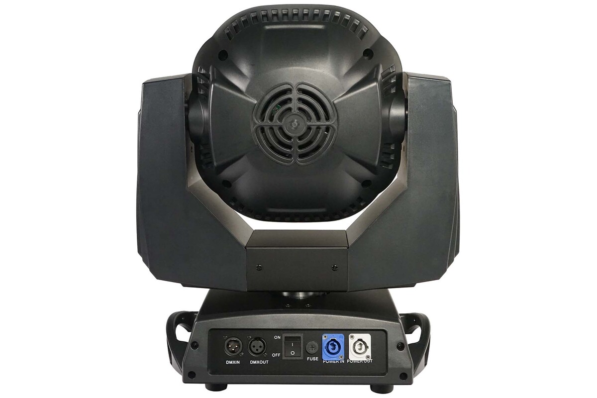 Ruchoma głowica Led Wash z 19 diodami LED o mocy 15 W, zoom 4 – 60 stopni, makra wzorowania pikseli, dwukierunkowa obrotowa przednia soczewka, mieszanie kolorów RGBW i niezależne sterowanie pikselami. Efekt kalejdoskopowy z obrotem przedniej soczewki. Efekty stroboskopowe z regulowaną prędkością.