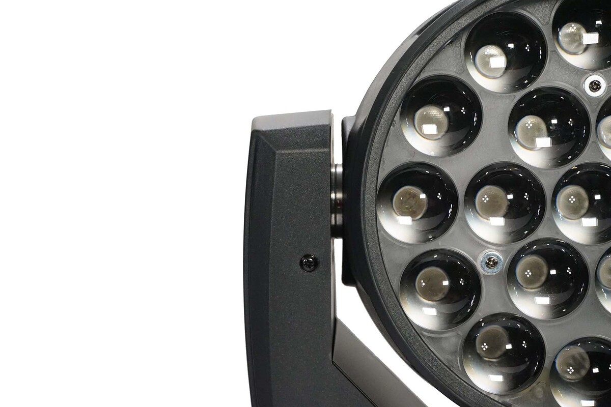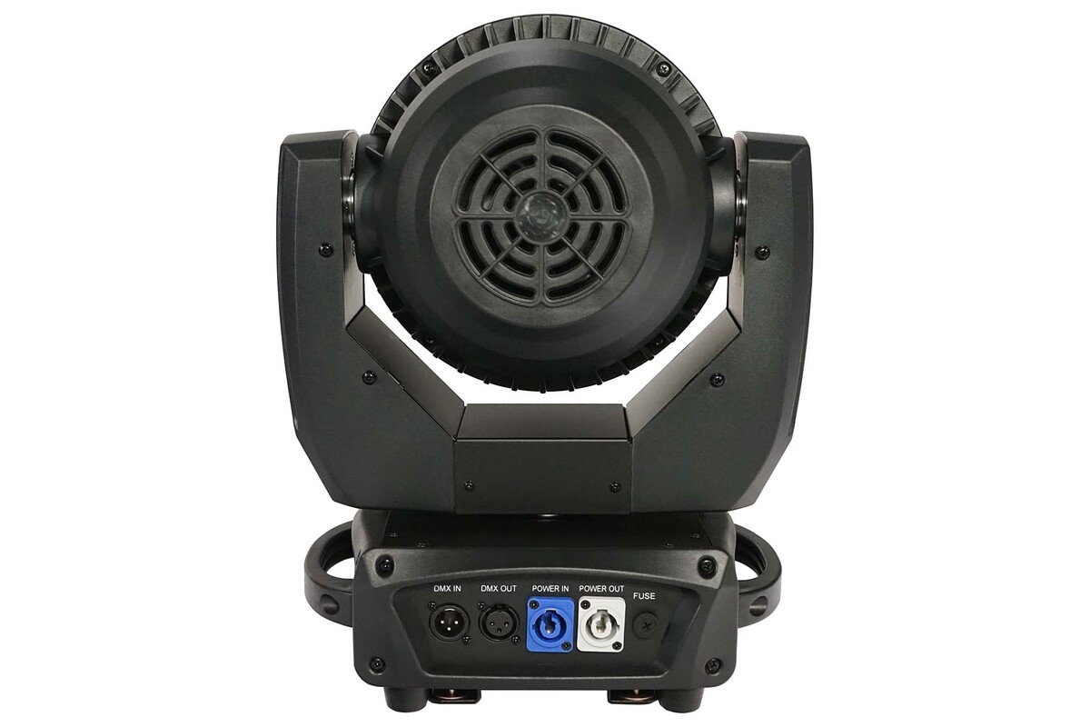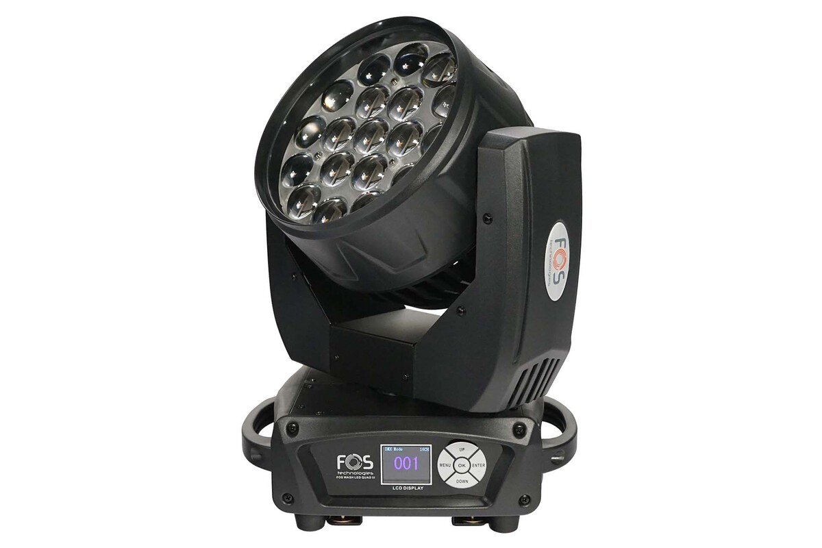Ruchoma głowica Wash/Beam, 19 diod LED RGBW 15w 4w1, zoom 6-50°, 3 sekcje sterowania pikselami, zaprogramowane makra kolorów, mieszanie RGBW z lub bez sterownika DMX, wyświetlacz LCD.