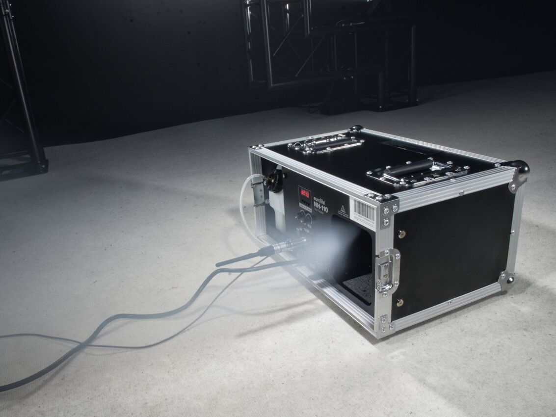 Eurolite NH-110 to fazer turystyczny o solidnej konstrukcji i dużej mocy grzewczej wynoszącej 1000 watów. Jest zainstalowany w solidnej walizce lotniczej, łatwy w transporcie i posiada innowacyjne szybkozłącze na zbiorniku płynu: idealny na trasy koncertowe, sceny i kluby.