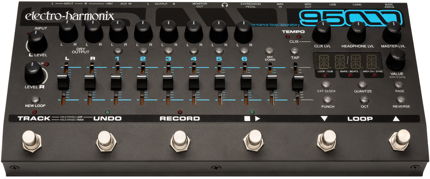 Electro Harmonix wprowadza najbardziej zaawansowany looper do tej pory. Zawiera sześć ścieżek mono i jedną ścieżkę stereo do miksowania. Nagrywa 375 minut i 100 pętli z kartą Micro SD 16GB, a przełączanie między pętlami jest szybkie i łatwe.