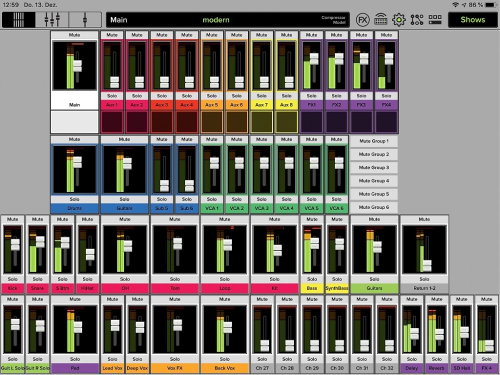 32- KANAŁOWY BEZPRZEWODOWY MIKSER CYFROWY • 32 przedwzmacniacze mikrofonowe Onyx+™ • 10 w pełni konfigurowalnych wyjść XLR plus wyjście słuchawkowe • Najlepsza w branży aplikacja sterująca Master Fader • Nagrywanie USB 32×32 • Porzuć multicore – umieść mikser w dowolnym miejscu na scenie lub w stojaku rack BEZPRZEWODOWE MIKSOWANIE • Pełna kontrola przez iOS, Android, Mac * lub PC * • Brak FOH – miksuj z dowolnego miejsca • Obsługuje do 20 oddzielnych urządzeń naraz • Wielu inżynierów może korzystać z jednego miksera POTĘŻNE PRZETWARZANIE I PROCESOR SYGNAŁOWY • 32 kanały wejściowe z 4-pasmowym PEQ + HPF, bramką, kompresorami i RTA / Spectrograph • 32 kanałów wejściowych z możliwością linkowania stereo • 15 magistral wyjściowych z 4-pasmowym PEQ + HPF / LPF, 31-pasmowym EQ, kompresorem / limiterem, opóźnieniem i RTA / Spektrografem • 8 wyjść Aux z możliwością linkowania stereo • 6 podgrup z możliwością linkowania stereo • Magistrala L / R • 6 grup VCA i 6 grup MUTE • 4 stereofoniczne procesory FX z wbudowanymi efektami typu delay, reverb, flanger i innymi • Ruting we / wy ze źródłami A / B na kanał • Oscylator zawierający szum różowy / biały i sinusoidę • Kompresory / bramki i EQ z interfejsem „nowoczesnym” lub „tradycyjnym” NAGRYWANIE I ODTWARZANIE WIELOŚCIEŻKOWE • Interfejs audio USB 32×32 dla Mac lub PC • Odtwarzaj muzykę i podkłady w dedykowanym kanale stereo return • Wykonaj wirtualną próbę • Wielokanałowy rejestrator dla studia w niewysokiej cenie • Wykorzystanie pluginów Mac lub PC w pracy live PROGRAM MASTER FADER • Intuicyjny i łatwy do opanowania • Szybka nawigacja pomiędzy grupami a podglądem ogólnym • Szybka konfiguracja z gotowych presetów fabrycznych i użytkownika • Ograniczenia dostępu umożliwiają elastyczne dostosowanie interfejsu i zapobiegają niechcianym zmianom od innych użytkowników • Szybki dostęp do ustawień kanałów, tras sygnału i ogromnego zestawu doskonałych efektów dźwiękowych z ustawieniami wstępnymi • Eksport ustawień wstępnych, scen i kompletnych kopii zapasowych systemu za pośrednictwem Dropbox, poczty elektronicznej i innych • Działanie w trybie offline • Częste i łatwe do zaimplementowania aktualizacje • Dostępne na iOS, Android, macOS * i Windows * * Mac i PC będą dostępne od wersji Master Fader 5.1 DL16S i DL32S są kompatybilne z systemem iOS 10 lub nowszym, systemem Android OS 6 lub nowszym, systemem Mac OS 10.2 lub nowszym oraz systemem Windows 10 lub nowszym