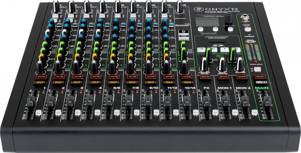 Mikser analogowy z portem USB to najlepsze kompaktowe i niedrogie rozwiązanie do grania live, nagrywania w domu czy tworzenia treści. Mikser Onyx 12 wyposażony został w: 14 kanałów, w tym 8 torów mikrofonowych z legendarnymi preampami Onyx Mic, które zapewniają do 60dB wzmocnienia, wygodne i precyzyjne 60mm Fadery dla lepszej kontroli głośności, funkcje nagrywania wielu ścieżek jednocześnie w wysokiej rozdzielczości 24-bit/96 kHz poprzez USB 14×4 I/O na Mac/PC, potężny procesor DSP z edytowalnymi parametrami efektów i możliwością zapisania własnych presetów, odtwarzacz i rejestrator na kartę SD – 96 kHz / 24-bit 2×2, przejrzysty kolorowy wyświetlacz, wbudowany moduł Bluetooth do bezpośredniego odtwarzania muzyki na kanałach 13/14, Aux send: 2 + FX, globalny zasilacz phantom 48v, filtr górnoprzepustowy 100Hz low cut na kanałach mic 1-8, przełącznik Hi-Z na kanałach 1-2 pozwalający na bezpieczne podpięcie bezpośrednio do miksera gitary lub basu i korekcję Perkins „British style” 3-band EQ z opcją on/off i parametrycznym Mid Freq, możliwość montażu w skrzyni rack. Wymiary: 376 x 356 x 136 mm (DxWxH). Waga: 5,5 kg.