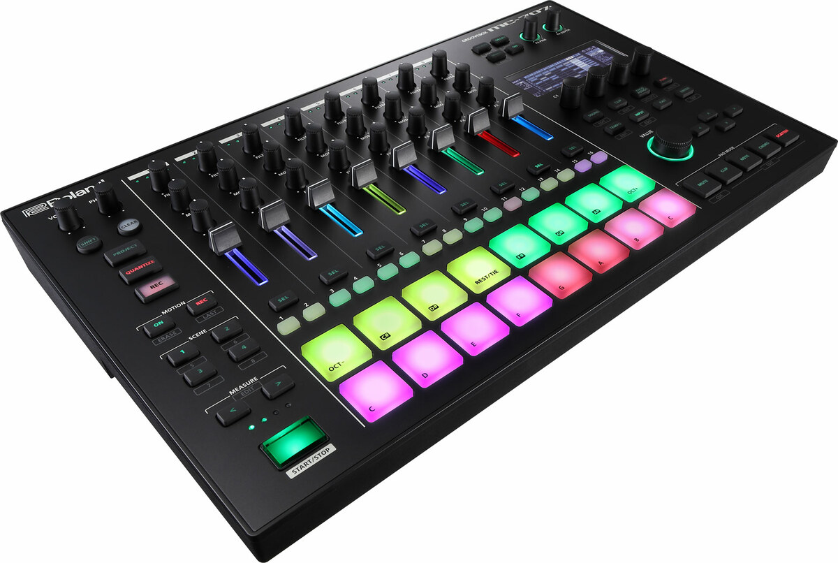 Wyposażony w dużą ilość elementów sterujących MC-707 pozwala kształtować Twoją muzykę na różne sposoby. Suwaki dla każdej ścieżki umożliwiają natychmiastowe miksowanie i aranżowanie części, a do potencjometrów można przypisać dowolny parametr który potrzebujesz. Możesz nawet nagrywać ruchy potencjometrów, które później są odtwarzane automatycznie. Układ padów 8×2 doskonale nadaje się nie tylko do grania na perkusji i do wyzwalania klipów – możesz tworzyć melodie, ograniczać się do dowolnej skali i wyzwalać złożone akordy.