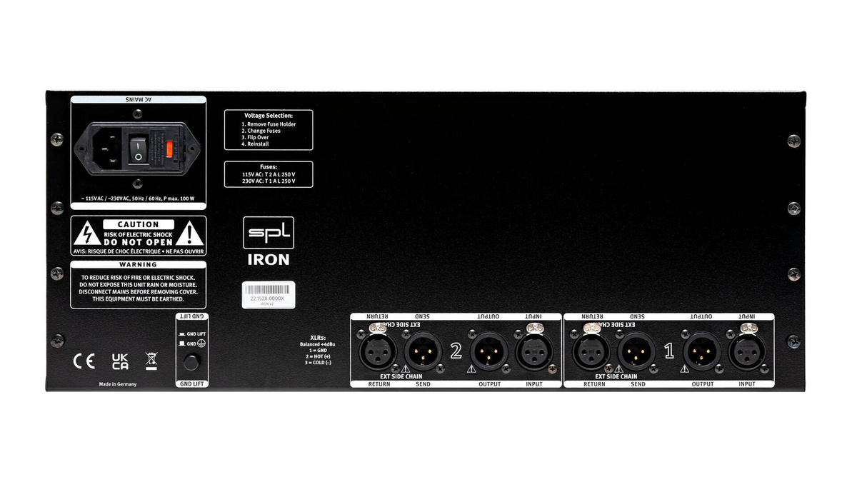 IRON v2 został wyposażony w symetryczne inserty side-chain z korespondującymi złączami XLR dla wysyłki i powrotu. Dla przypomnienia, pierwsza wersja była wyposażona w wejścia side-chain ze złączami TS jack, co umożliwiało otrzymywanie triggerowanego sygnału.