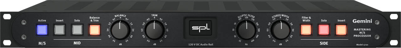 Gemini to pierwszy procesor masteringowy SPL umożliwiający matrycowanie Mid-Side (M/S), napędzany przy tym autorską technologią VOLTAiR, umożliwiającą pracę z napięciem 120V, co poszerza zakres dynamiki oraz headroom. Dzięki technice M/S sygnały zawarte w środku panoramy (Mid), takie jak wokal, werbel, czy bęben taktowy, mogą być dokładnie odseparowane od sygnałów bocznych (Side) – rozłożonych w panoramie gitar, talerzy, czy wszelkiej maści dźwięków przestrzennych. Podczas pracy na sumie, wykorzystanie techniki M/S jest jest często najlepszym sposobem na dokładny dostęp do indywidualnych elementów miksu.