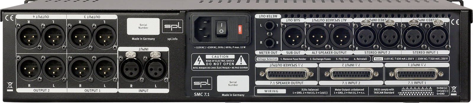 Analogowe urządzenie pozwalające na zarządzanie monitoringiem w studiu, pracujące zarówno z sygnałem stereofonicznym jak i z dookólnym 7.1