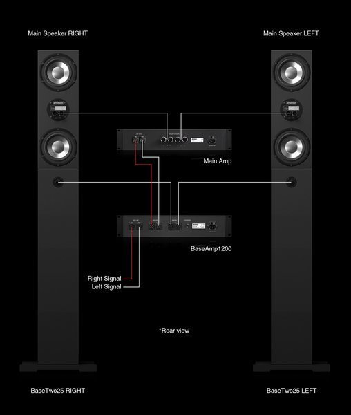 Jednak ten system nie tylko zapewnia zwarty, ładnie zestrojony dół pasma – poprawia również klarowność środkowych częstotliwości, zwiększając możliwości utrzymywania odpowiedniej mocy właśnie w tym paśmie w sparowanych z BaseTwo25 monitorach firmy Amphion lub innych. Dzieje się tak dzięki zredukowanym zniekształceniom intermodulacyjnym, ponieważ najniższe częstotliwości są transferowane z monitorów do odpowiadającemu im systemowi poszerzającemu bazę. Dodatkowo możliwość dopasowania częstotliwości 'crossover’ zapewnia integrację, nawet w przypadku kiedy subwoofery zostaną umieszczone za wielkoformatową konsoletą, a monitorach przymocowanych do jej górnej części, czyli tzw. 'meter bridge’.