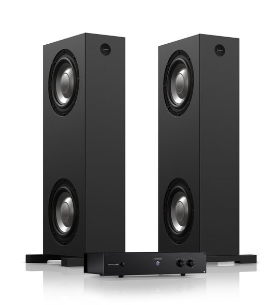 Napędzane przez zamknięty w obudowie 2U dedykowany wzmacniacz o mocy 2 x 700W, z aktywnym, dyskretnym modułem częstotliwości 'crossover’ czwartego rzędu z możliwością ich dopasowania i potencjometrem głośności