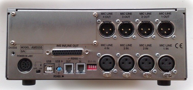 Regulacja Gain na każdym kanale w zakresie +20dBu do +70dBu w skokach co 5dBu. Na każdym kanale sygnalizacja LED – obecnośc sygnału i clip.
