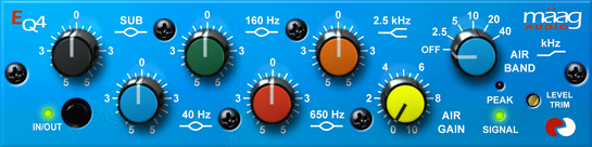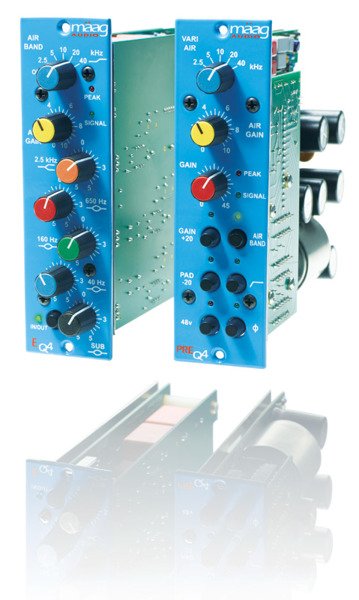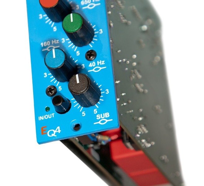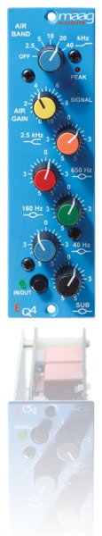 The Maag Audio EQ4 to jednokanałowy, 6-pasmowy korektor, który został pomyślany jako moduł popularnej serii 500, będąc kompatybilny zarówno z lunchboxem API 500-6B, jak i systemem rack 500VPR. Bazując na wcześniejszych konstrukcjach EQ3 i EQ3-D, korektor EQ4 wykorzystuje autoski obwód Air Band, czyli półkowe podbicie w paśmie od 2.5 do 40kHz, co przekłada się na doskonałą wręcz transparentność brzmienia oraz prezencję w górze pasma, nie zmieniając przy tym naturalnego charakteru przetwarzanego sygnału. Na panelu przednim znajdziemy również skokowe potencjometry, pozwalające na szybki powrót do wcześniejszych ustawień.