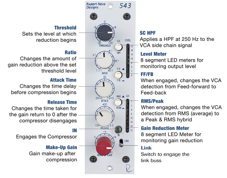 W większości wczesnych urządzeń autorstwa Ruperta Neve’a za kontrolę dynamiki odpowiadała detekcja feed-back, bazująca na napięciu z wyjścia urządzenia. Jednak natura kompresorów typu feed-back ogranicza szybkość zadziałania układu kompresji. By zapewnić szybsze, technicznie precyzyjniejsze działanie kompresora, w nowszych konstrukcjach Ruperta Neve’a wprowadzono również tryb feed-forward. Dzięki przełącznikowi FF/FB mamy możliwość korzystania zarówno z kompresji klasycznej, jak i nowoczesnej.