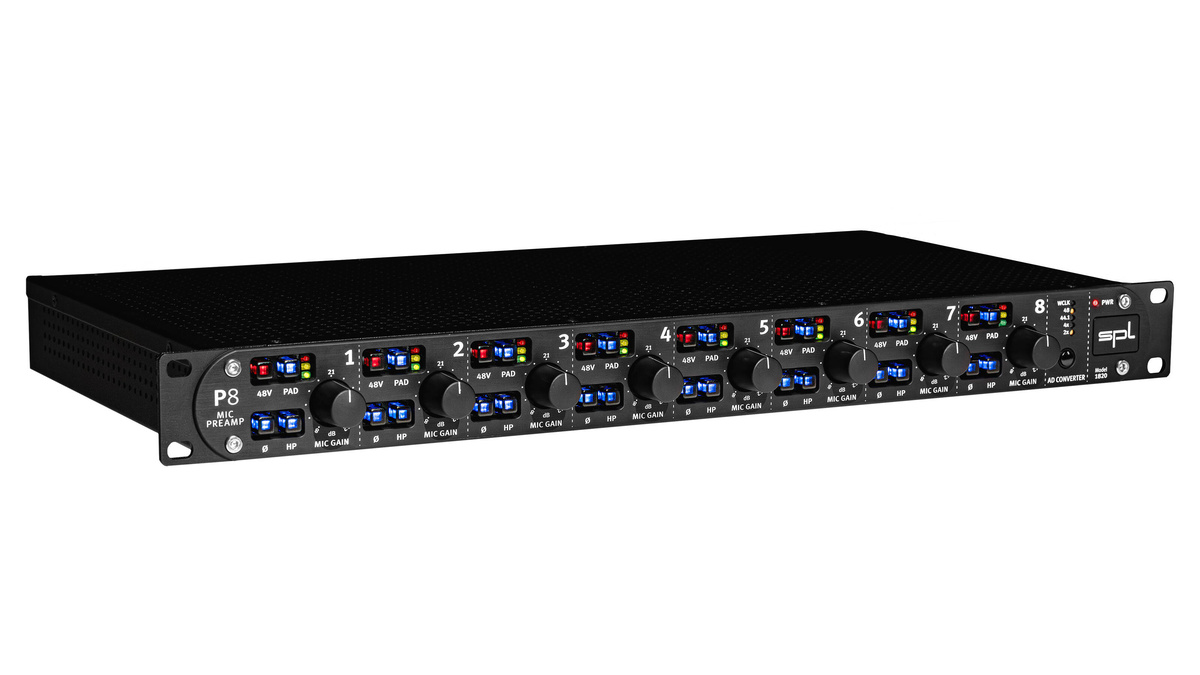 SPL P8 to w pełni dyskretny, ośmiokanałowy przedwzmacniacz mikrofonowy. Nie znajdziemy tu psujących brzmienie układów scalonych, a każdy tor pracuje na osobnym tranzystorze, co jest spotykane we wszelkiej maści high-endowych konstrukcjach.