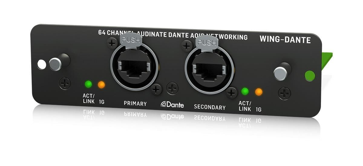 Behringer WING-DANTE – karta rozszerzeń do konsolety WING zapewniająca dwukierunkową łączność 64×64 w standardzie sieciowym Audinate Dante AoIP.