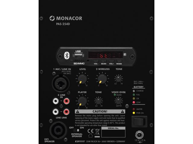 Wbudowany cyfrowy wzmacniacz, podwójny odbiornik mikrofonu bezprzewodowego (TXA-1822MR) oraz odbiornik Bluetooth do współpracy np. ze smartfonem