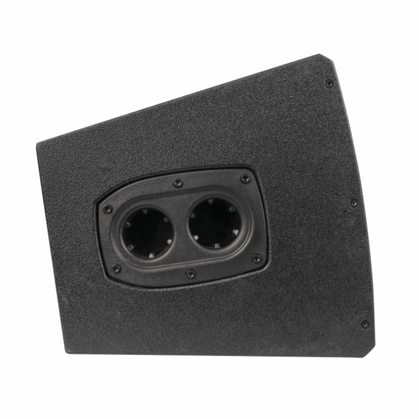 Wytrzymała, lekka obudowa ze sklejki ma podwójny kąt nachylenia (0° i 5°), co pozwala skierować obudowę w dół podczas montażu na słupie. Wykorzystuje ona 4-biegunowe złącza głośnikowe in i thru oraz oferuje dodatkowe 4-biegunowe złącze terminalowe, które jest szczególnie przydatne w przypadku instalacji na stałe. Aby w pełni wykorzystać możliwości NRG-15, zalecamy użycie filtra górnoprzepustowego 4. rzędu przy 50 Hz i dodanie subwoofera z serii NRG.