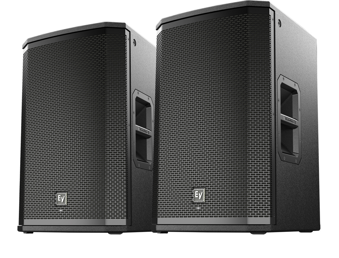 Aktywny zestaw 2x ETX 12 P o mocy 4000 W. ETX 12 P to aktywna kolumna głośnikowa w obudowie drewnianej, wyposażona w 12″ głośnik niskotonowy i 1.25″ głośnik wysokotonowy z wbudowanym wzmacniaczem o mocy 2000W i edytowalnym procesorem DSP