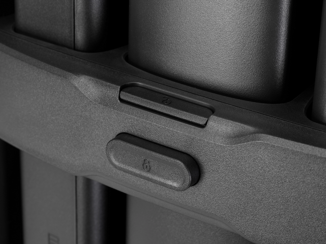 Wejścia/wyjścia obejmują 3 gniazda Neutrik XLR Combo, 1 wejście Hi-Z i sumowane wejście 3.5mm/BT ¼” zbalansowane passthrough z niezależną kontrolą głośności i opóźnieniem głośnika pozwala na rozbudowę systemu analogowego
