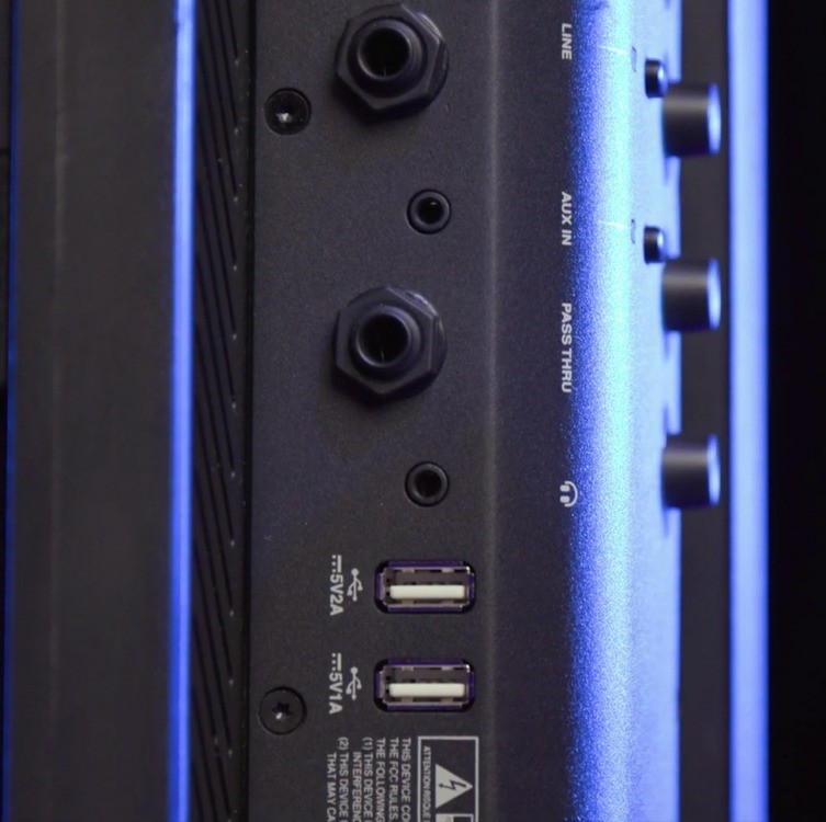 - Połącz miksy, instrumenty i urządzenia odtwarzające z dwoma złączami XLR/TRS, jednym 1/4-calowym wejściem gitarowym hi-Z i jednym wejściem pomocniczym 3,5 mm (1/8 cala).