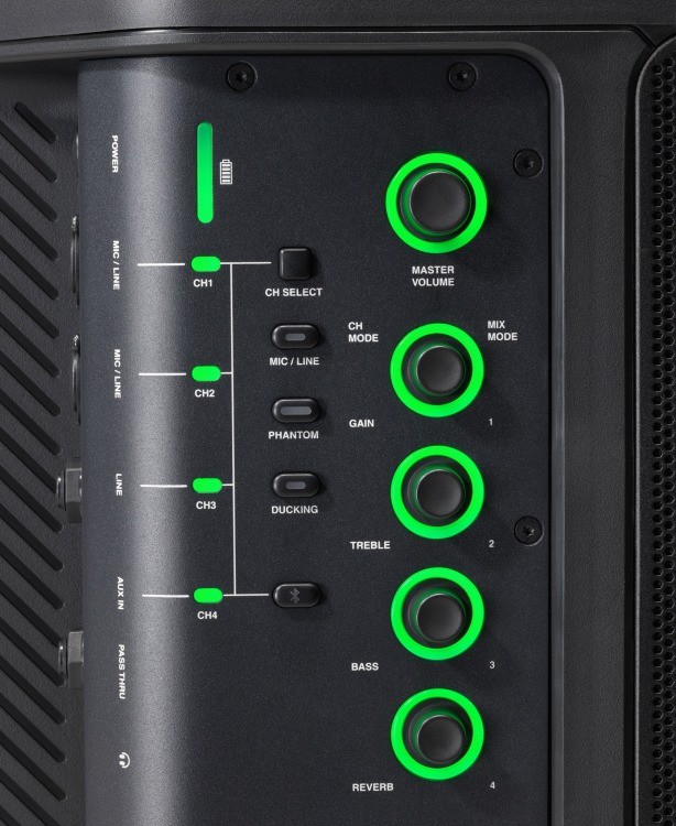 Przenośny, zasilany akumulatorem aktywny zestaw głośnikowy z 4-Kanałowym mikserem i Bluetooth