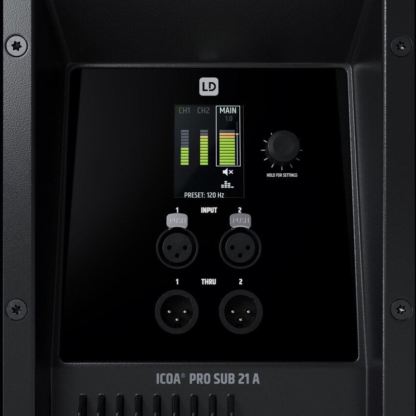 Intuicyjne menu jest obsługiwane za pomocą kolorowego wyświetlacza ze sterowaniem jednym pokrętłem lub bezpłatnej aplikacji ICOA PRO (iOS/Android). Wszystkie ustawienia można regulować szybko i bezprzewodowo za pośrednictwem aplikacji, a wiele głośników można sparować ze sobą. Konfiguracja stereo z maksymalnie dwoma głośnikami górnymi i czterema subwooferami, w tym bezpośrednie strumieniowanie muzyki przez Bluetooth 5.1 i TWS, może być utworzona i gotowa do użycia w aplikacji w ciągu zaledwie kilku sekund. Dioda LED stanu z przodu subwoofera umożliwia łatwą identyfikację i wskazuje, czy ogranicznik jest włączony.