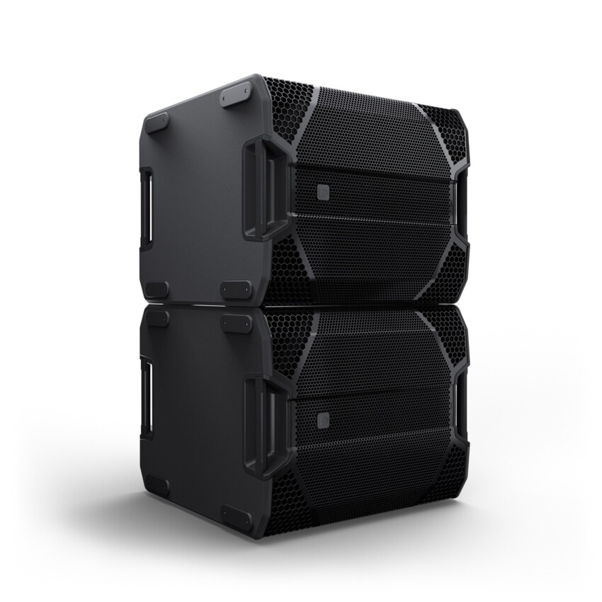 Dzięki zintegrowanym wnękom do układania w stosy i dwóm kołnierzom M20, subwoofer można bezpiecznie układać w stosy poziomo lub pionowo i elastycznie wbudowywać w dowolną konfigurację.