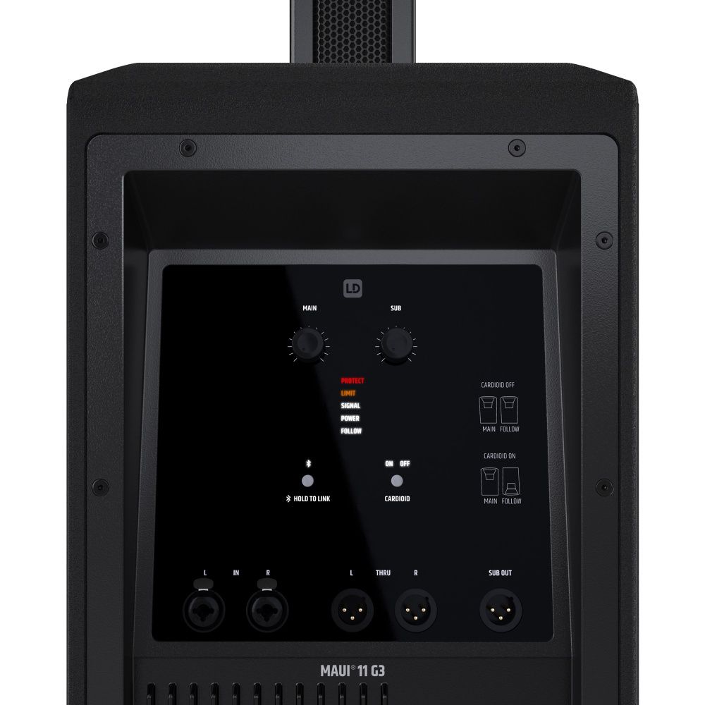 Kolumny MAUI 11 G3 zostały zaprojektowane jako kardioidalne. Umożliwia to kontrolowanie niskich tonów z przodu i tłumienie do 18 dB z tyłu, co daje czyste brzmienie na scenie. Wyposażony w dwa 8” głośniki niskotonowe i cztery porty bass reflex, subwoofer MAUI 11 G3 zapewnia czysty, zwarty i wyrazisty niski poziom brzmienia aż do 39 Hz. Dzięki zastosowaniu drugiego subwoofera można zwiększyć poziom niskich tonów nawet o 6 dB, a także ustawić go w konfiguracji kardioidalnej za pomocą jednego przycisku (ustawienie kardioidalne). Ponadto bardzo wytrzymała powłoka poliuretanowa subwoofera z łatwością wytrzymuje nawet najcięższe warunki w trasie.