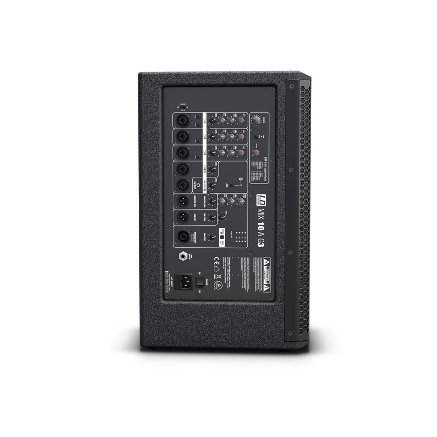 Idealny wybór do niewielkich zastosowań PA i monitoringu osobistego. Aktywny LD MIX 10 A G3 integruje 7-kanałowy mikser i wzmacniacz klasy D o mocy szczytowej 2 x 400 W. wzmacniacz klasy D o mocy szczytowej 2 x 400 W. Kompaktowy głośnik basowy wyposażony jest w 10-calowy głośnik niskotonowy i 1-calowy przetwornik wysokotonowy Celestion o paśmie przenoszenia od 65 Hz do 20 kHz i dyspersji 90° x 60°, zapewniając krystalicznie czysty dźwięk. zapewniając krystalicznie czysty dźwięk z uderzeniem i szczegółowością. Obsługa szeroką gamę źródeł wejściowych, w tym instrumenty elektryczne, smartfony, tablety, odtwarzacze MP3 i CD, wbudowany mikser zapewnia 3 kanały mikrofonowe z 2-pasmowym korektorem, zasilaniem phantom 48 V i przełączanym wejściem wejście hi-Z (CH1) i stereofoniczny kanał liniowy. Sekcja wyjściowa zawiera 3-pasmowy korektor główny do ogólnego kształtowania brzmienia, 4-segmentowy pomiar LED i wyjścia XLR dla monitora i subwoofera. Ponadto, LD MIX 10 A G3 posiada procesor DSP z 16 ustawieniami efektów, limiter i zabezpieczenie nadprądowe, przeciążeniowe, zabezpieczenie nadprądowe, przeciążeniowe, przeciwzwarciowe i termiczne. Wyjście speakON umożliwia zasilanie pasywnego LD MIX 10 G3 do łatwego tworzenia konfiguracji stereo. Ssztywna obudowa jest wykonana z wytrzymałej sklejki o kącie nachylenia 50° kąt nachylenia monitora i gniazdo Dual-Tilt do montażu pod kątem 0° lub 5° kątów. Samodzielnie lub w tandemie z jednostką pasywną, LD MIX 10 A G3 zapewnia niesamowitą wydajność i wszechstronność w lekkiej, łatwo przenośnej obudowie.Dane techniczne: