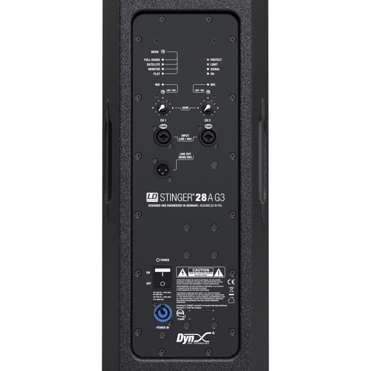 Opatentowana przez LD Systems technologia DynX® DSP oznacza, że STINGER® 28 A G3 zapewnia doskonałe osiągi z maksymalną czystością i mocą w każdych warunkach. Przetwarzanie sygnału funkcji zwrotnicy i wielopasmowego limitera pozwala osiągnąć optymalny czas pracy i wysoką odporność na zniekształcenia. Zaprojektowana jako wszechstronny koń roboczy, obudowa głośnika wykonana jest z wytrzymałej sklejki brzozowej. Wyjątkowo odporna powłoka z polimocznika zapewnia wyjątkową wytrzymałość i trwałość. Cechy charakterystyczne