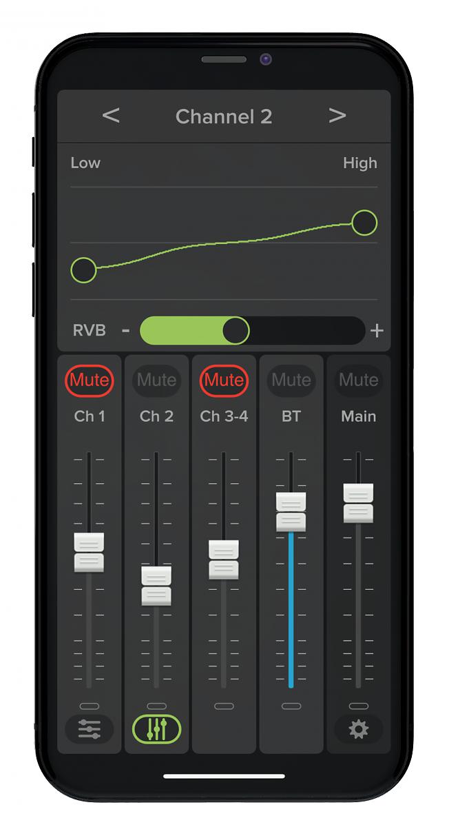 Sparuj swój smartfon i uzyskaj bezprzewodową kontrolę nad wszystkim, od poziomów kanałów po EQ, ustawienia domyślne systemu i wiele więcej.
