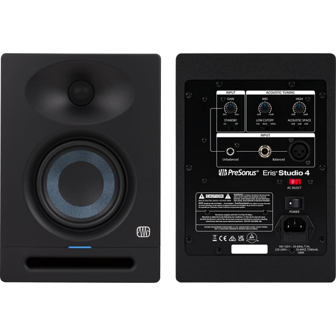 Dostosowanie monitorów PreSonus Eris Studio 4 do swojego pomieszczenia jest bardzo proste dzięki obfitym kontrolkom akustycznym. Kontrolki średnich i wysokich częstotliwości pozwalają na kompensację niedoskonałości pomieszczenia. Ponadto, dostępna jest także kontrola przestrzeni akustycznej, która pomoże w rozwiązaniu problemów związanych z umieszczeniem monitorów w rogu lub blisko ściany.