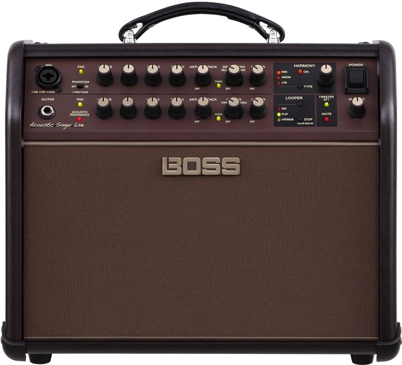 Kanał gitarowy Acoustic Singer Live posiada dyskretne analogowe obwody na wejściach, które zapewniają duży headroom dla szybkiego ataku i szerokiego zakresu dynamiki akustycznych gitar. Posiada również BOSS Acoustic Resonance, który za pomocą zaawansowanego przetwarzania eliminuje twarde, sterylne brzmienia produkowane przez pickupy piezo w większości gitar scenicznych. Kanał posiada również trzy-pasmową korekcję oraz odwrócenie fazy i kontrolę filtru notch aby uchronić się od problemów ze sprzężeniem zwrotnym. Dwa rodzaje efektów chorus i zoptymalizowany dla gitary pogłos są wisienką na torcie Twojego brzmienia.