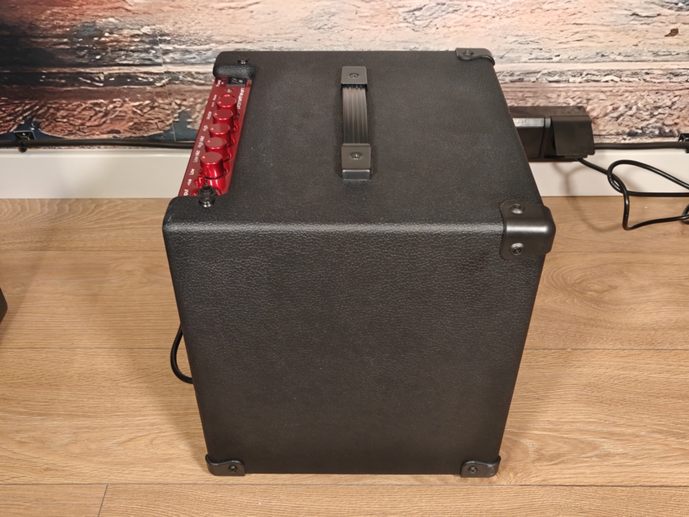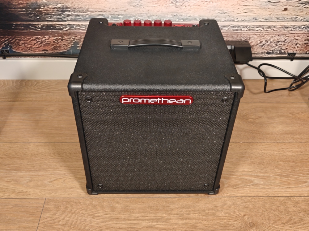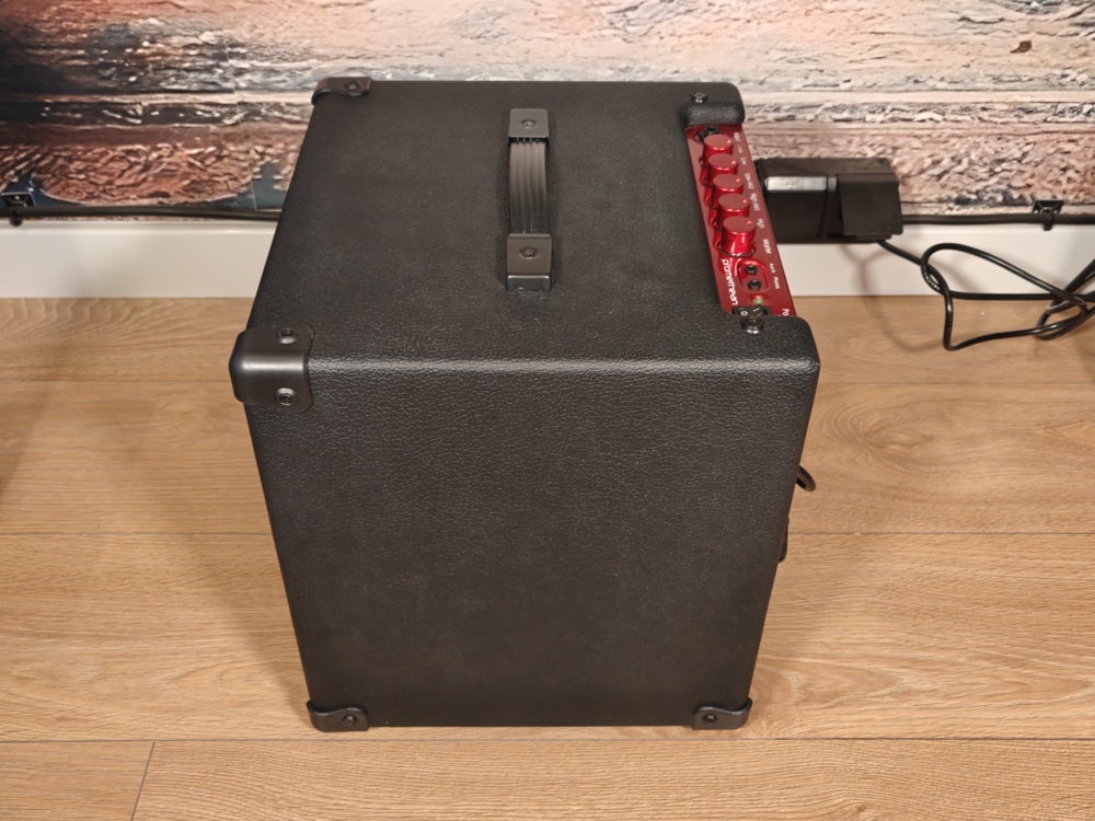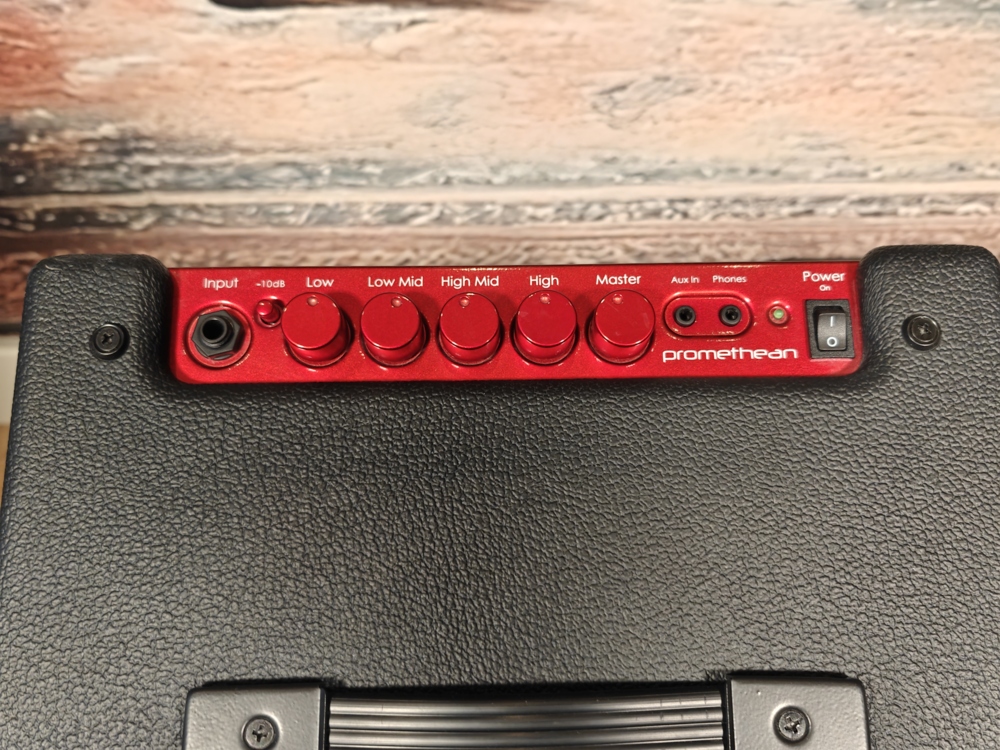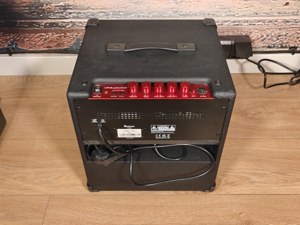 Combo basowe IBANEZ P20 Promethean o mocy 20W przy 8 omach. Posiada głośnik 8-calowy. Regulacja High, High-Mid, Low-Mid, Low, Master, przycisk -10dB Input. Wejście słuchawkowe i AUX (obydwa mini-jack). Wymiary: 33 x 35 x 31 cm. Waga: 7.8 kg.