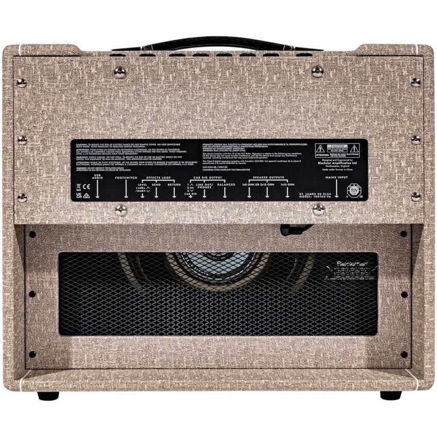 Blackstar St. James 50 EL34 1×12″ – Combo gitaroweGłowy i combo St. James to niezwykle wszechstronne wzmacniacze, nadające się dobrze do wielu różnych stylów i zastosowań. 1. kanał jest taki sam dla wszystkich modeli St. James, a jego twórcy inspirowali się klasycznymi amerykańskimi wzmacniaczami z lat 60. Z tego względu oferuje czyste brzmienie bogate w górach, a przy tym ma spory zakres basów i zróżnicowane średnie pasmo. Ten kanał dobrze się na daje na platformę dla pedałów. 2. kanał ma różne przeznaczenie zależnie od modelu. Modele EL34 powstały w oparciu o brytyjski wzmacniacz klasy A z wczesnych lat 60. i przeznaczone są do zakresu wzmocnienia od niskiego po średnie. Za pomocą opcji głosowej przełączanej noża można pogłośnić przedwzmacniacz, podbijając go o 10dB. Wszystkie modele są wyposażone w 3-drożny przełącznik mocy, za pomocą którego można wybrać tryby pracy lampowego stopnia wyjściowego. Ponadto wzmacniacze z linii St. James mają reaktywny tłumik, a dzięki zastosowaniu technologii Cab Rig gitarzyści mają dostęp do najnowocześniejszej symulacji kolumn, głośników i przestrzeni.