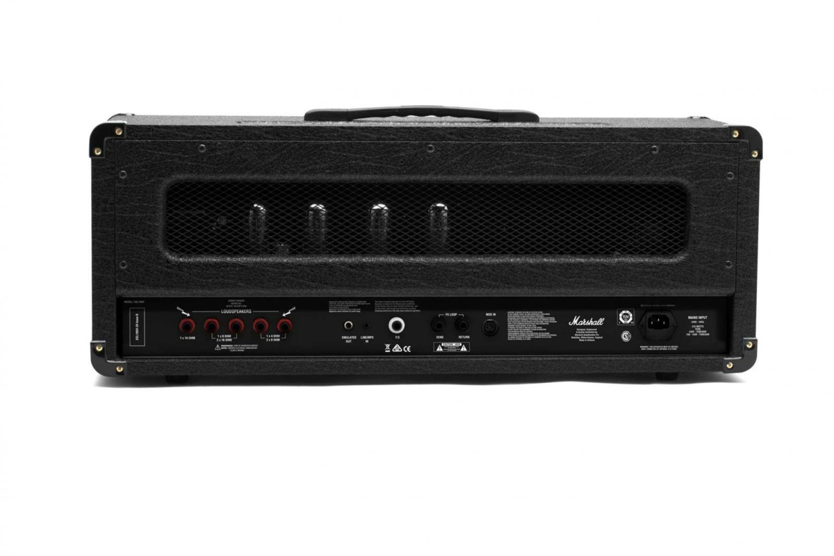 Marshall DSL100HRTM posiada dwa kanały generujące legendarne brzmienie Marshall’a i oferujące pełną funkcjonalność każdemu, kto potrzebuje uniwersalności oraz niekwestionowalnej jakości. W DSL100HRTM możesz wybierać między dwoma brzmieniami na każdym kanale, dzięki czemu każdy gitarzysta może wyrazić swoją osobowość poprzez brzmienie.Dwa potencjometry Master Volume pozwolą wynieść twoje solo na pierwszy plan.DSL100 możesz łatwo zabrać z domu do studia i na scenę dzięki pięciu wyjściom głośnikowym. Ma on również funkcję stanby silent recording do łatwego nagrywania.Używając niezależnego reverbu dla każdego z kanałów, pętli efektów oraz funckji tone shift możesz eksperymentować ze swoim brzmieniem.DSL100 może być używany w każdych warunkach z pełnym zaufaniem, ponieważ moc może być obniżona ze 100W do 50W bez utraty jakości.Kompatybilny z MIDIBardziej wymagający gitarzyści mogą kontrolować DSL100 poprzez dowolny sterownik MIDI,dzięki czemu możesz używać go z innymi urządzeniami MIDI W tym samym czasie.OgólneModel: DSL100HRSeria: DSLTechnologia: LampowaKanały: 2, ultra gain i classic gainElektronikaMoc wyjściowa: 100W z opcją redukcji mocy do 50WWyjścia: 5 x wyjście głośnikowe jack 1/4″ (obciążenie 6Ω/8Ω/ 4Ω), 1 x jack 3.5mm (emulowane wyjście liniowe)Wejścia: 1 x instrumentalne jack 1/4″, 1 x jack 3.5mm aux/MIDI, footswitchSterowanie: Przełącznik loop on/off, regulacja głośności master I i master II, przełącznik master, potencjometry – reverb(osbny dla kanału classic i ultra), resonance, presence, bass, middle i treble, przełącznik tone shift, kanał ultra gain – kontrola głośności i wzmocnienia(gain) – przełącznik OD1/OD2, kanał classic gain – kontrola głośności i wzmocnienia(gain) – przełącznik Clean/Crunch, możliwość redukcji mocy(z tyłu)Efekty: ReverbPętla efektów: Tak, send/returnLampyLampy Preampu: 3 x ECC83Lampy wzmacniacza mocy:1 x ECC83, 4 x EL34AkcesoriaFootswitch: PEDL-90012 (w zestawie). Kompatybilny z PEDL-91005 (JVM4 6-way footswitch): 1 – Clean (classic green) 2 – Crunch (classic red) 3 – OD1 (ultra green) 4 – OD2 (ultra red) 5 – Master 1/Master 2 (przełącanie) 6 – FX Loop on/offKabel: Odczepiany kabel zasilający (w zestawie)WymiarySzerokość (mm): 740Wysokość (mm): 274Głębokość (mm): 242Waga (kg): 24.2