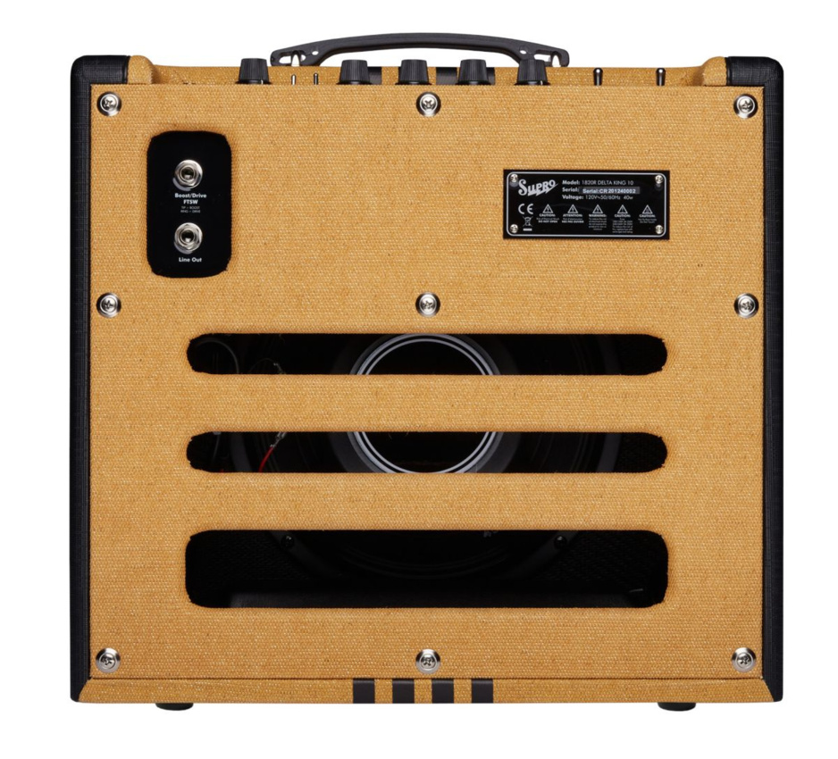 Nawiązując do oryginalnych wzmacniaczy combo Supro, Delta King 10 ma customową, topolową konstrukcję obudowy i dwa niezapomniane kolory: tweed z czarnymi paskami i czarny z czarnymi paskami.
